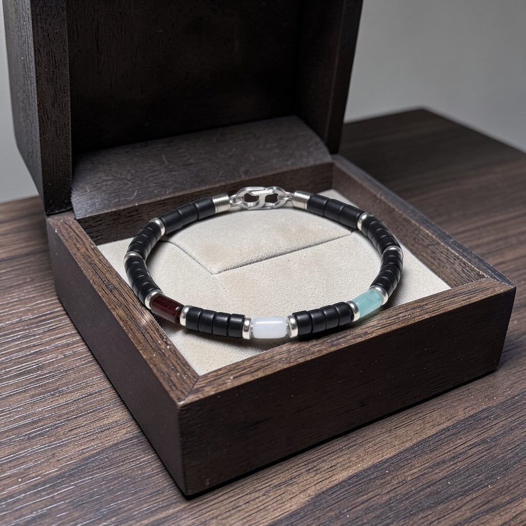 Finished with stainless steel tube beads on each end, the design adds a modern, polished touch while ensuring durability and long-lasting wear. The combination of natural stones and sleek metal details creates a balanced look that is both rugged and refined.